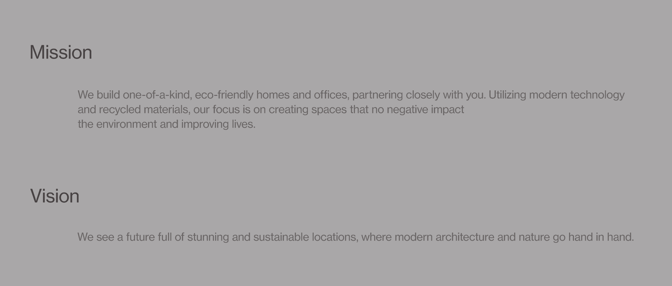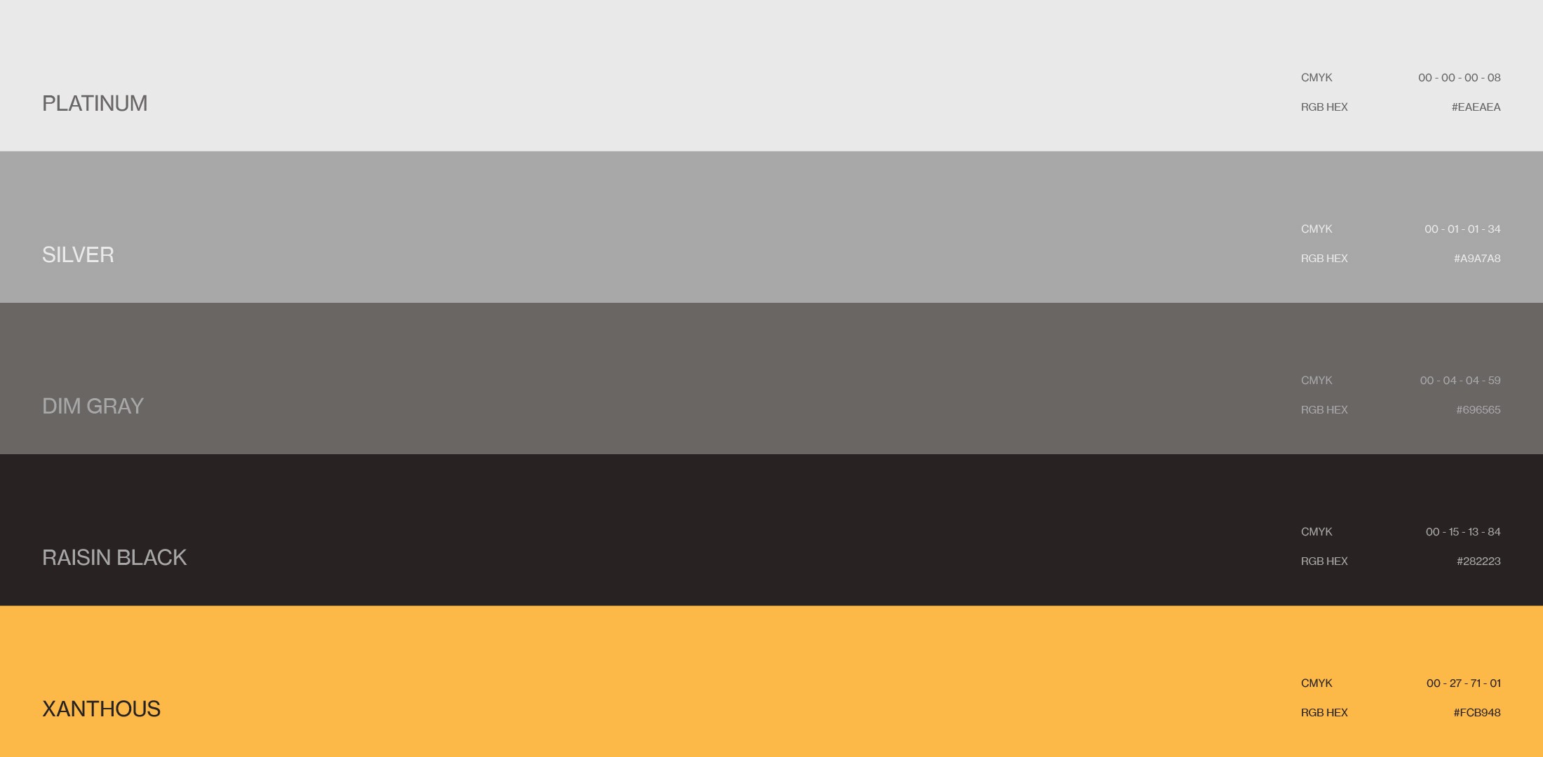 We chose earthy tones to highlight Skyrise Architects' dedication to being eco-friendly. The shades of white and gray (Platinum) mirror the color of concrete, while dark brown (Raisin Black) resonates with the earth itself. We added a pop of yellow (xanthous) as our accent color to create a warm, inviting feel reminiscent of sunlight, a crucial element in any architectural design.
